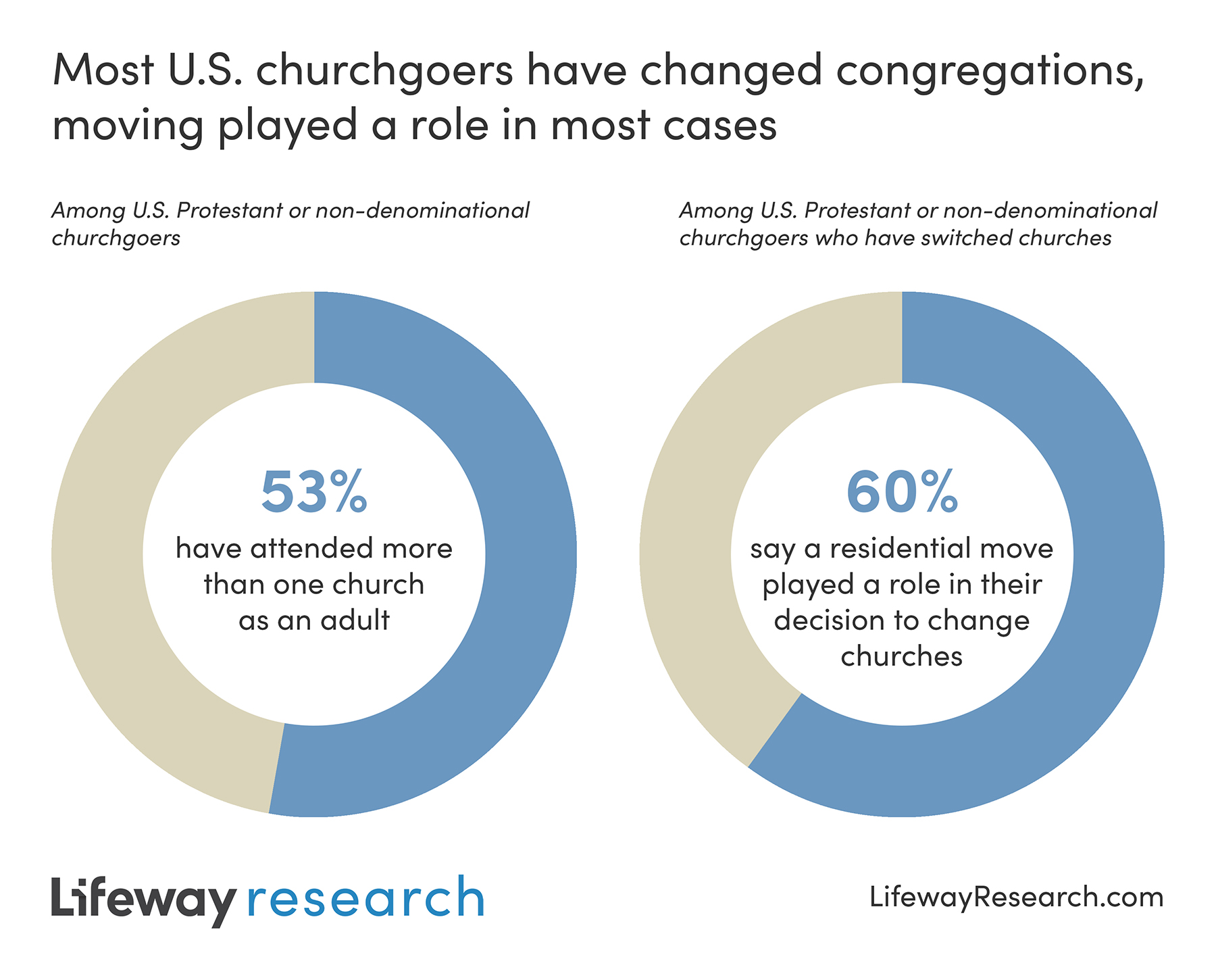 Lifeway Research studied 1,001 U.S. adults who identify as Protestant or non-denominational, attend church worship services at least twice a month and have attended more than one church as an adult.