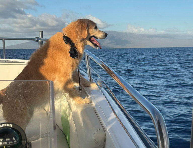 Macy is Lovitt's trusty companion when she leads a boatload of tourists to marvel at whales. “She loves the ocean,” said Lovitt, now a Maui boat captain for 25 years. “She grew up on it.”
