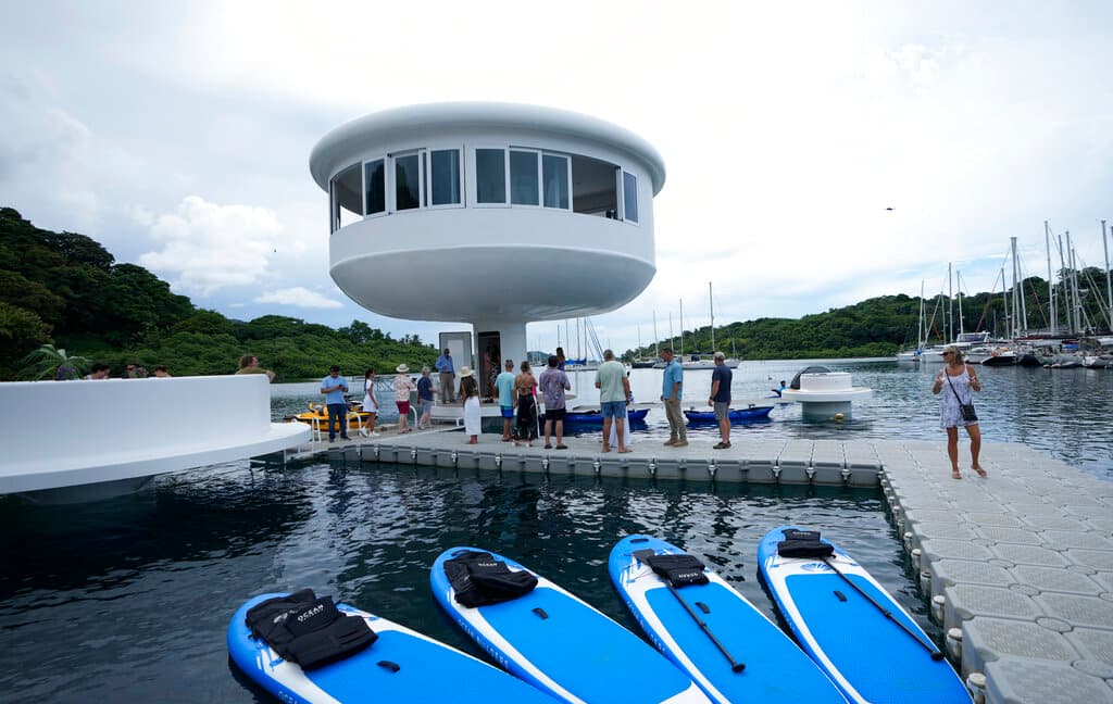 COLON, Panama (AP) — The unveiling of a futuristic luxury model home on Panama's Caribbean coast tanked Thursday when the SeaPod Eco prototype perched above the water on a column slumped onto an adjacent dock.