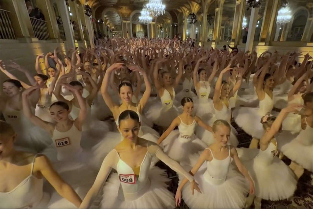 NEW YORK (AP) — Hundreds of young dancers in white tutus and tightly coiffed hair gathered in New York's Plaza Hotel on Wednesday to break the world record for dancing on pointe in one place.