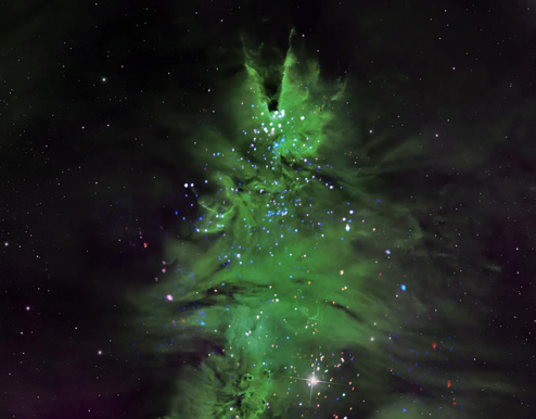 A new version of the “Christmas tree cluster” is available. Like NGC 602, NGC 2264 is a cluster of young stars. (For comparison, the Sun is a middle-aged star.)