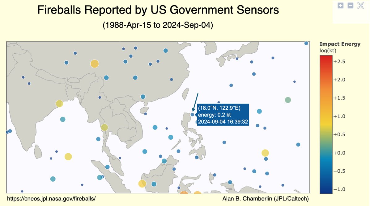 The asteroid — about 3 feet across (1 meter) — was spotted by astronomers in Arizona and broke apart over the coast of the Philippines hours after the discovery.
