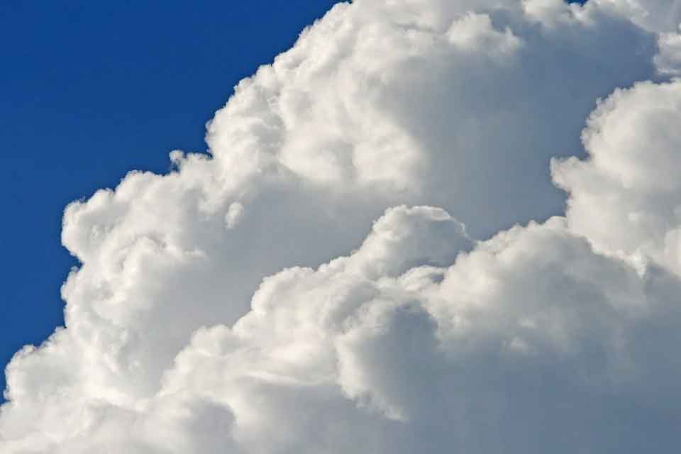 Clouds are made of millions of these tiny liquid water droplets. The droplets scatter the colors of the sunlight equally, which makes clouds appear white. Even though they can look like cushy puffballs, a cloud can’t support your weight or hold anything up but itself.