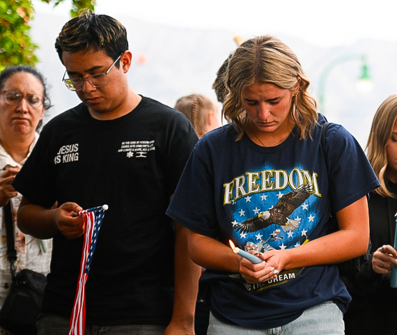 Just off campus, a man stood on a street corner holding a sign that read “R.I.P. Charlie." A parade of trucks drove through town flying American flags in his honor.