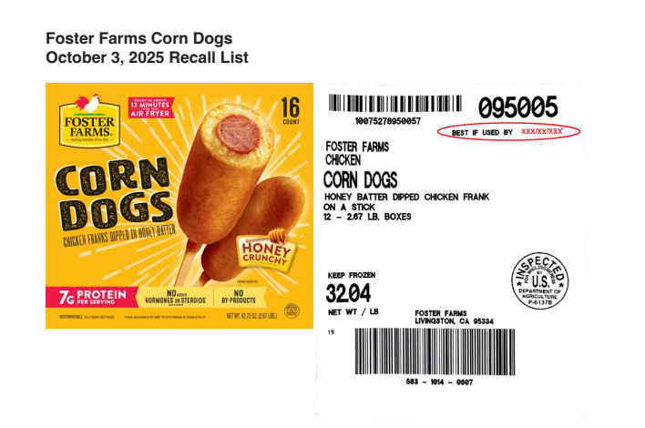 Foster Poultry Farms, LLC, a Livingston, Calif. establishment, is recalling approximately 3,843,040 pounds of chicken corn dog products that may be contaminated with extraneous material, specifically pieces of wood embedded in the batter, the U.S. Department of Agriculture’s Food Safety and Inspection Service (FSIS) announced today.
