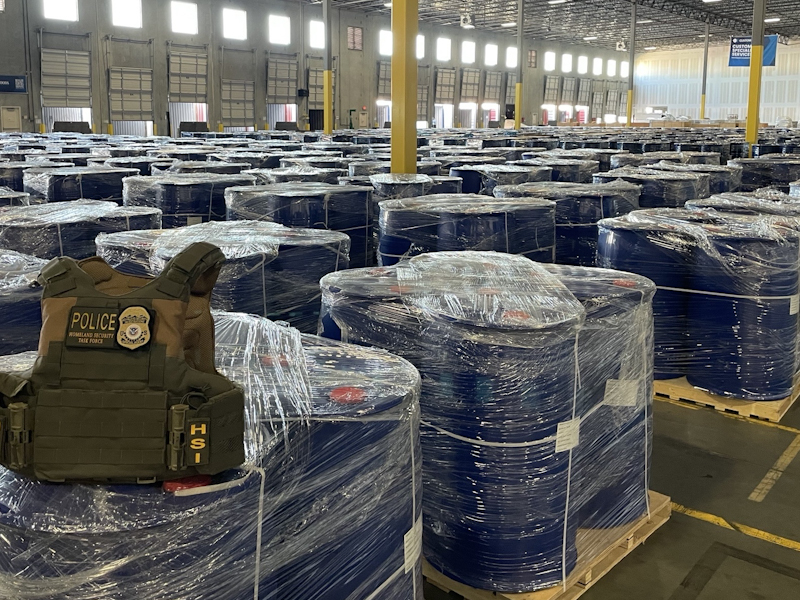 More than 300,000 kilograms of chemicals used to produce methamphetamine and intended for clandestine labs controlled by the Sinaloa Drug Cartel in Mexico were seized this week by agents with the U.S. Department of Homeland Security’s Homeland Security Investigations (HSI) at the Port of Houston, announced U.S. Attorney for the District of Columbia Jeanine Ferris Pirro and Acting Director Todd Lyons of U.S. Immigration and Customs Enforcement.