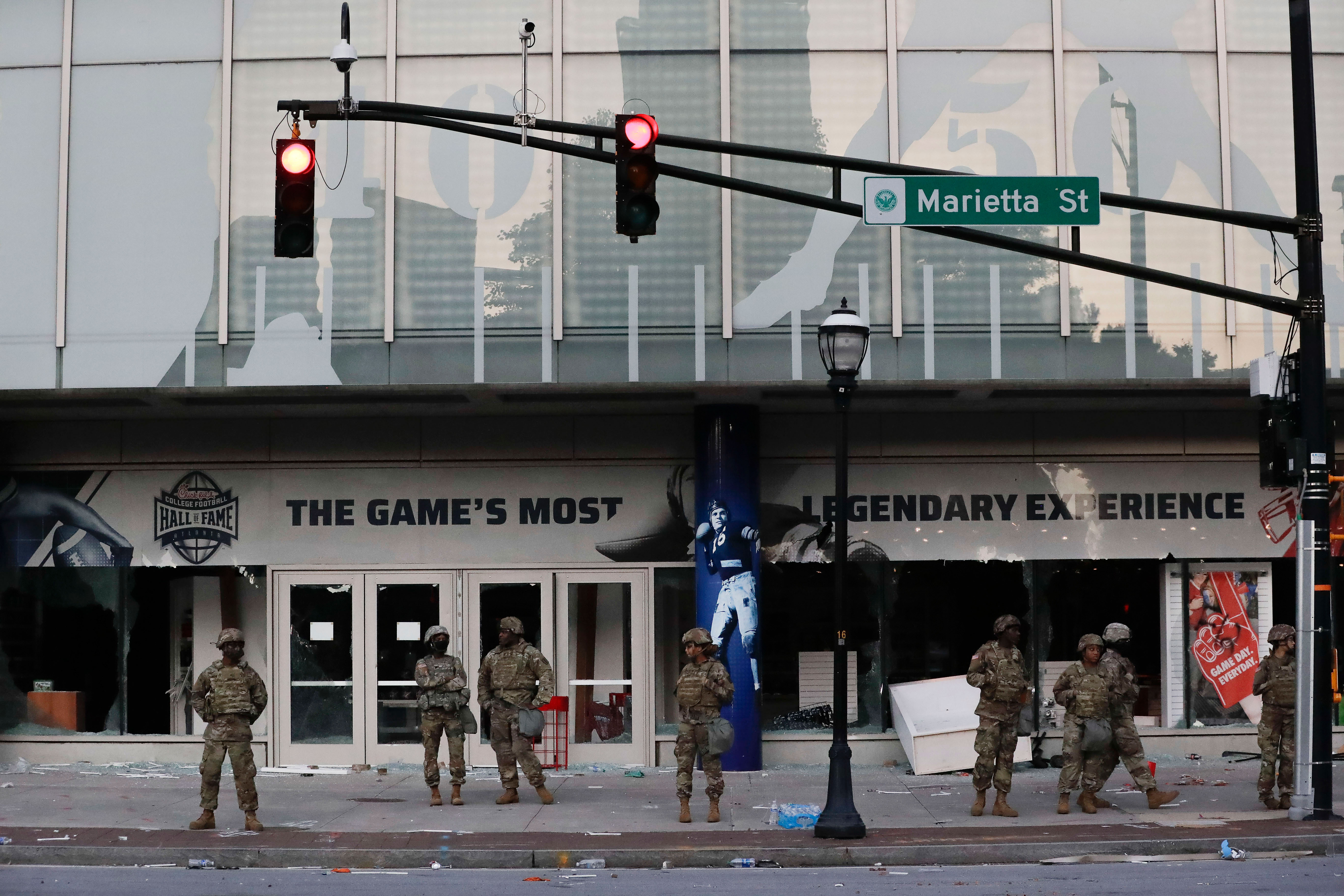 More protests were staged Saturday in Atlanta, but no additional damage was reported to the Hall of Fame or other businesses around Centennial Olympic Park. The city was under a curfew and a heavy presence of police and National Guard soldiers curtailed a repeat of Friday night’s carnage.