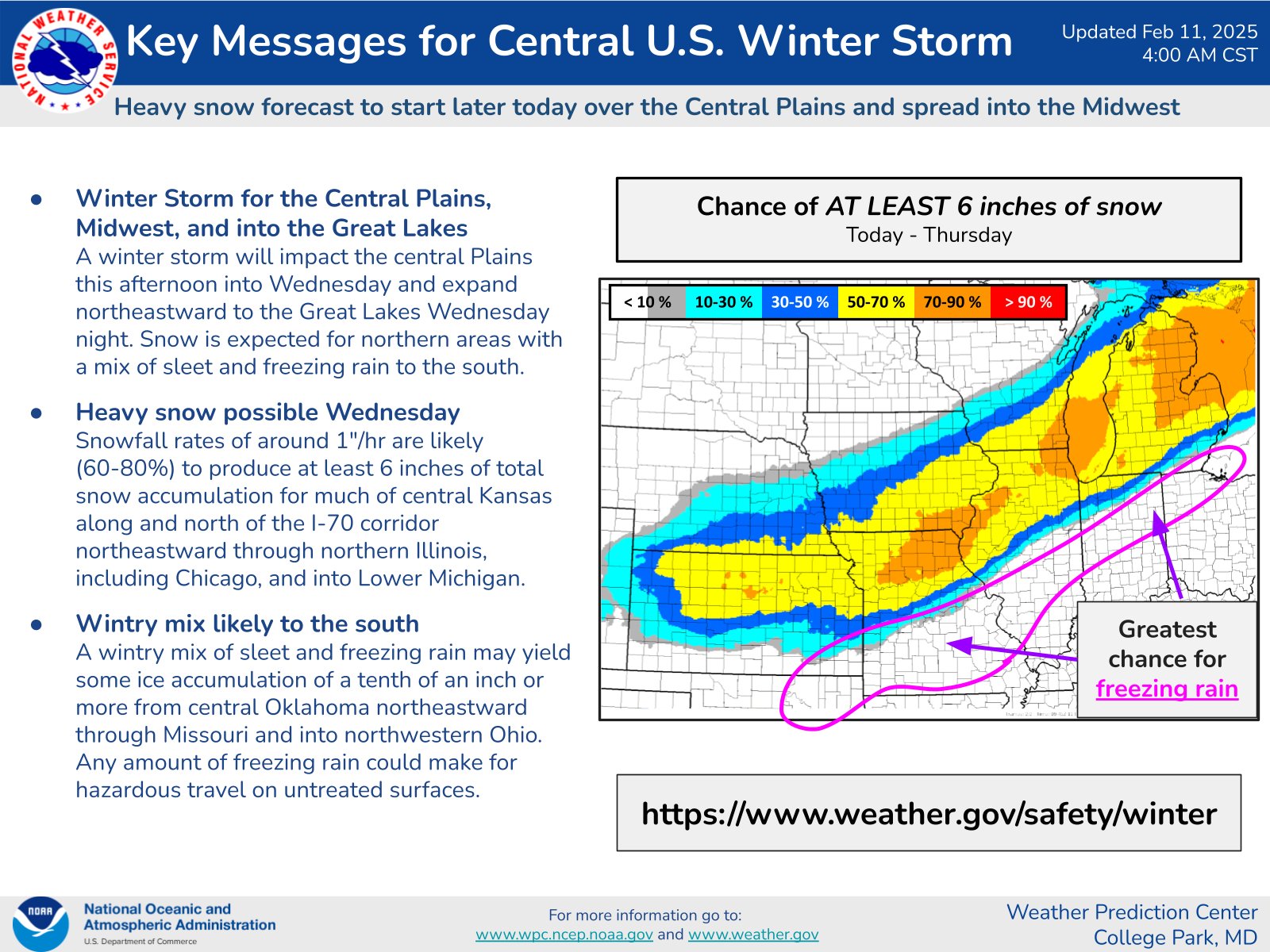 A separate storm system is set to bring heavy snow from Kansas and Missouri to the Great Lakes on Wednesday, the weather service said.