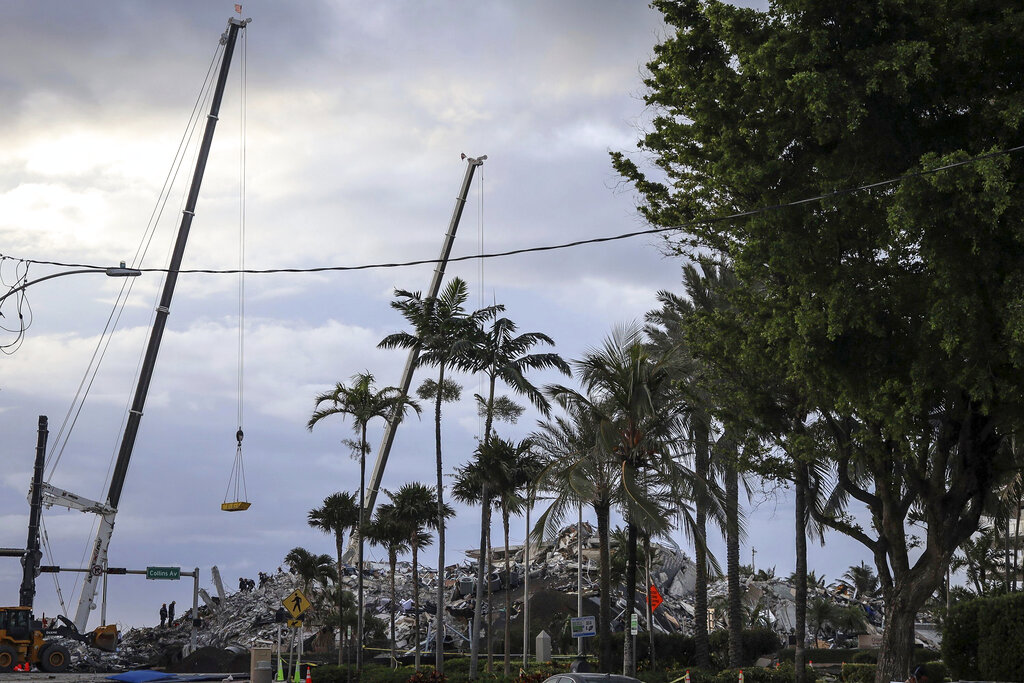 SURFSIDE, Fla. (AP) — A ramped-up rescue effort at the collapsed condo building faced new threats from the weather as Tropical Storm Elsa began lashing Florida, on a path that would mostly spare South Florida.