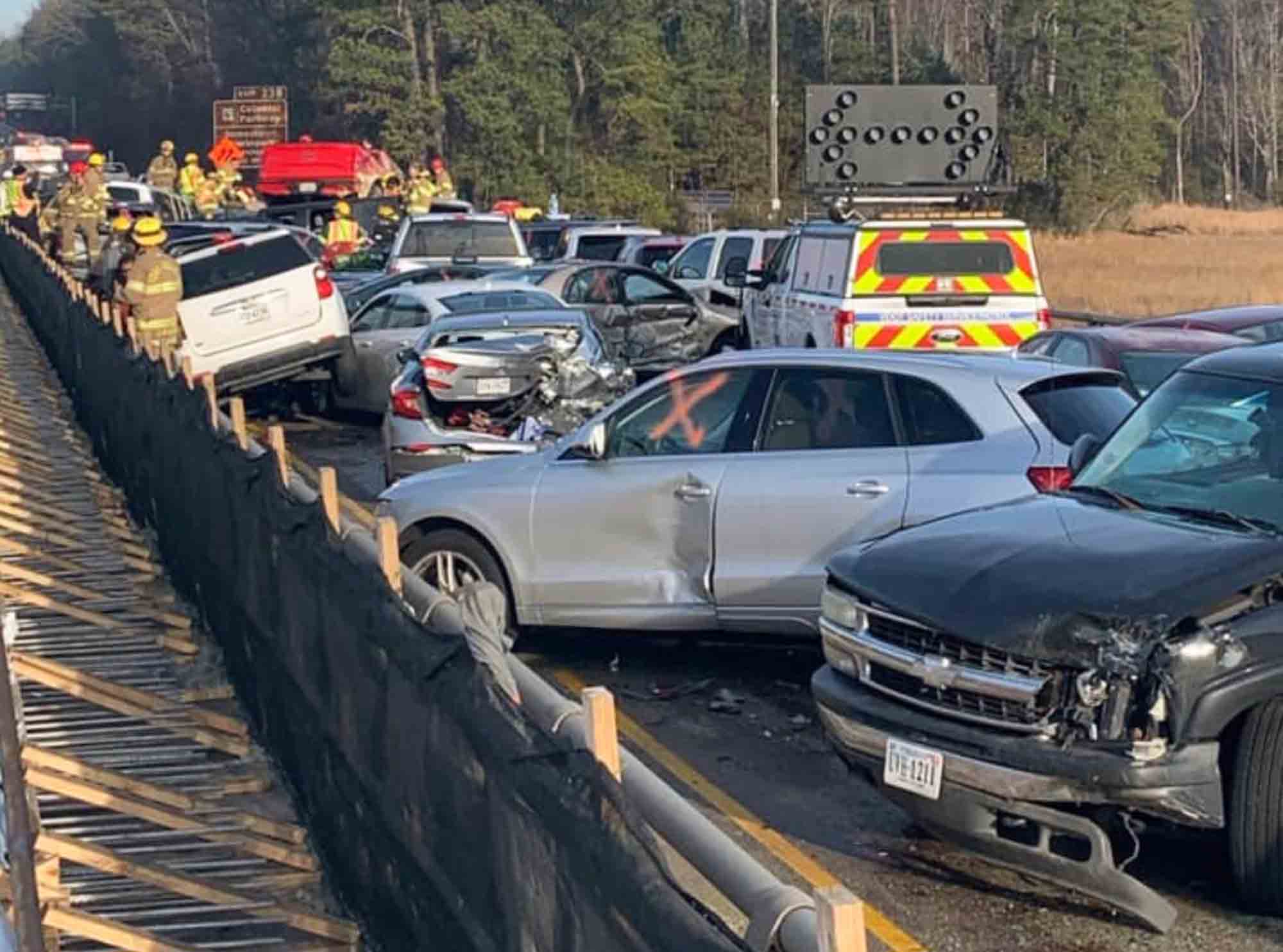 WILLIAMSBURG, Va. (AP) — A pileup involving more than 60 cars on a major interstate in Virginia on Sunday morning injured dozens of people, some critically, according to state police.