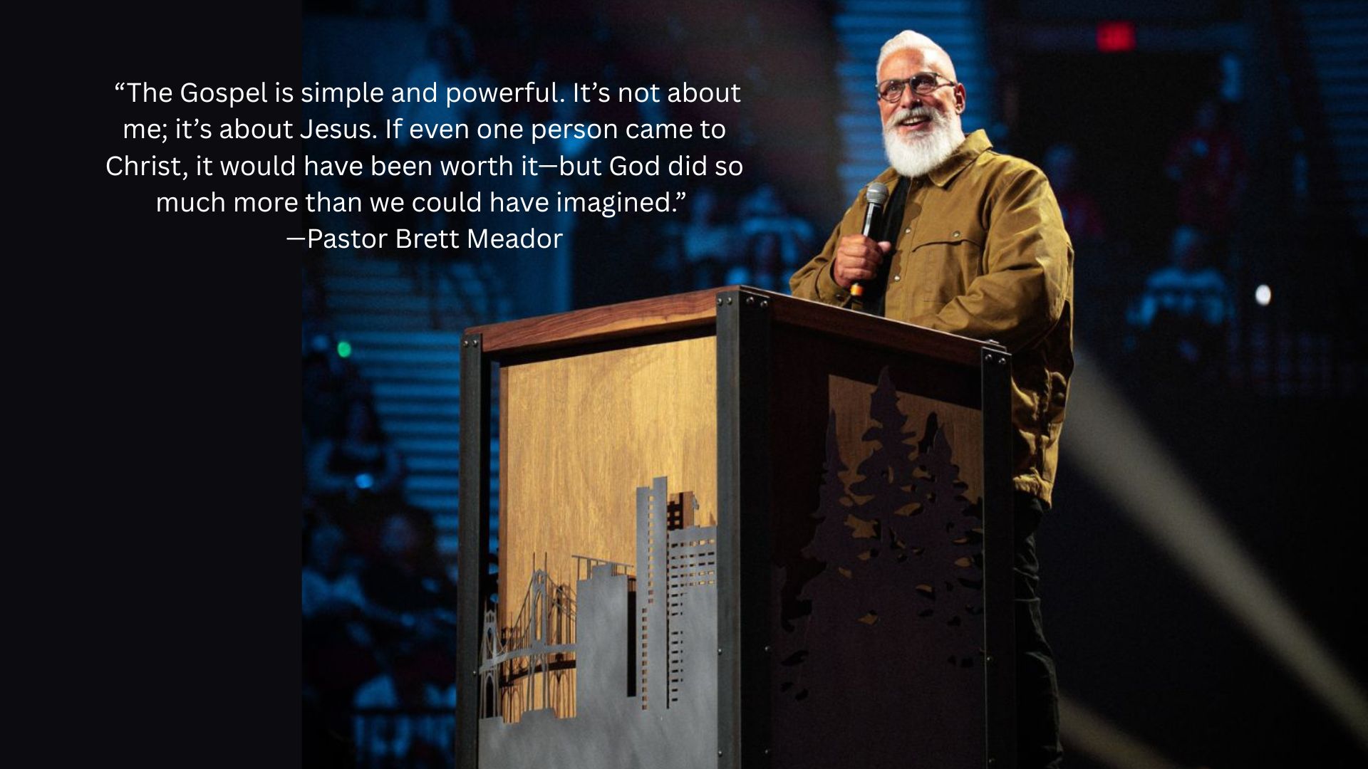 [Photo Credit: Athey Creek Church ] Pastor Brett Meador PDX Crusade