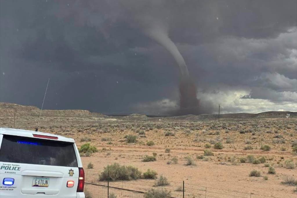 No injuries were reported, but an unknown number of livestock and pets were reported missing, the Navajo Police Department said in a social media post. Images posted by the department showed the towering column of a tornado surrounded by dark clouds and also a flattened home surrounded by debris.