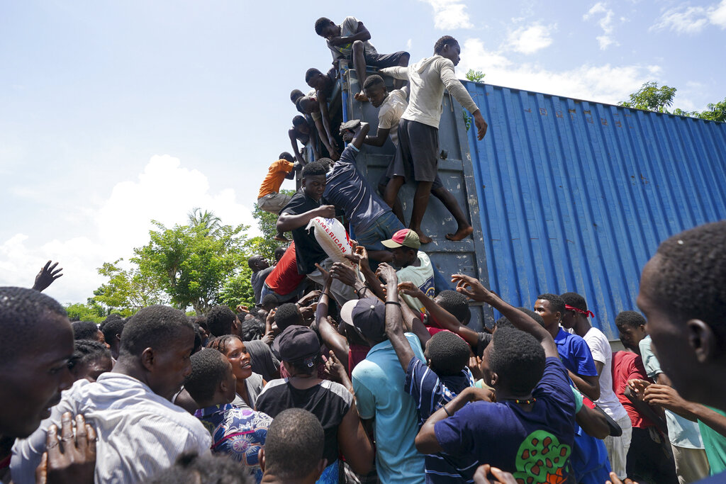 LES CAYES, Haiti (AP) — Haitians left hungry and homeless by a devastating earthquake swarmed relief trucks and in some cases stole desperately needed goods Friday as leaders of the poor Caribbean nation struggled to coordinate aid and avoid a repeat of their chaotic response to a similar tragedy 11 years ago.