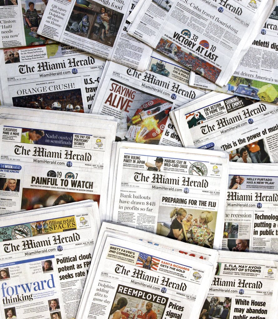 NEW YORK (AP) — McClatchy, the publisher of the Miami Herald, The Kansas City Star and dozens of other newspapers, has filed for bankruptcy protection as it struggles to pay off debt while revenue shrinks because more readers and advertisers are going online.