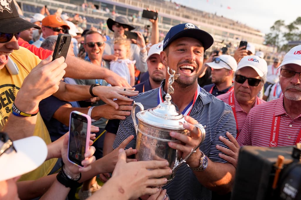 PINEHURST, N.C. (AP) — Bryson DeChambeau climbed back into the most famous bunker at Pinehurst No. 2, this time with the U.S. Open trophy instead of his 55-degree sand wedge, filling the silver prize with grains of sand to commemorate the best shot of his life.