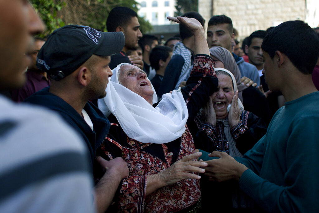 KHAN YOUNIS, Gaza Strip — In the southern Gaza city of Khan Younis, large crowds of joyful Palestinians have taken to the streets, with people cheering and honking car horns.