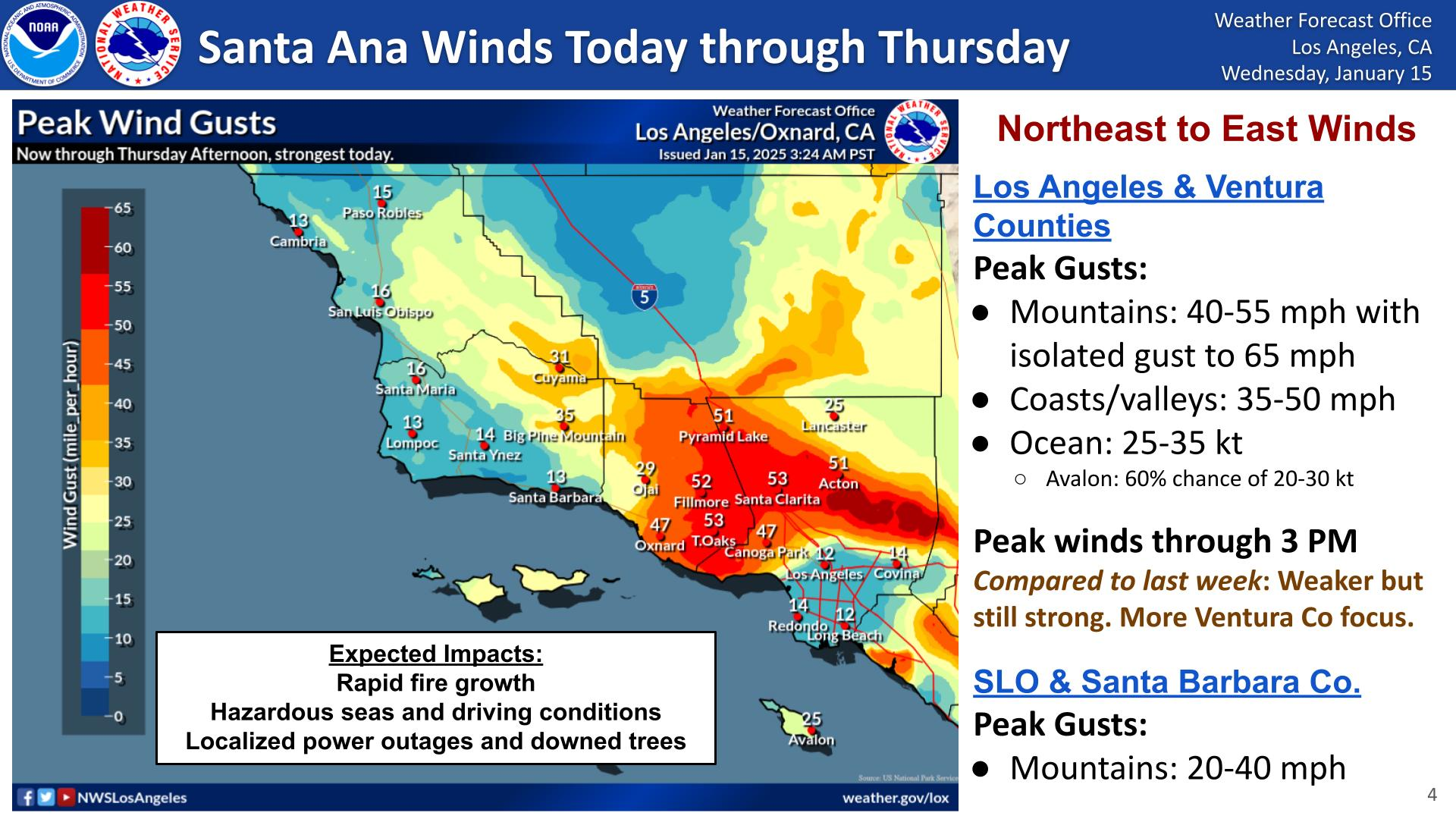 A day after firefighters got a reprieve with lighter winds than expected, gusts were hitting up to 35 mph (56 kph) on the coast and valleys and 55 mph (88 kph) in the mountains before dawn, National Weather Service meteorologist Todd Hall said.