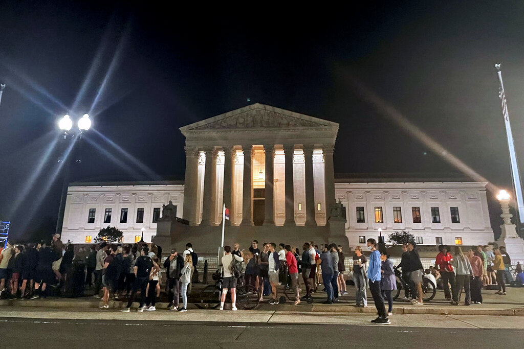 Protests have erupted in front of the Supreme Court Building and around the country after a leaked draft opinion suggested a majority of conservatives on the court are prepared to end the constitutional right to an abortion.