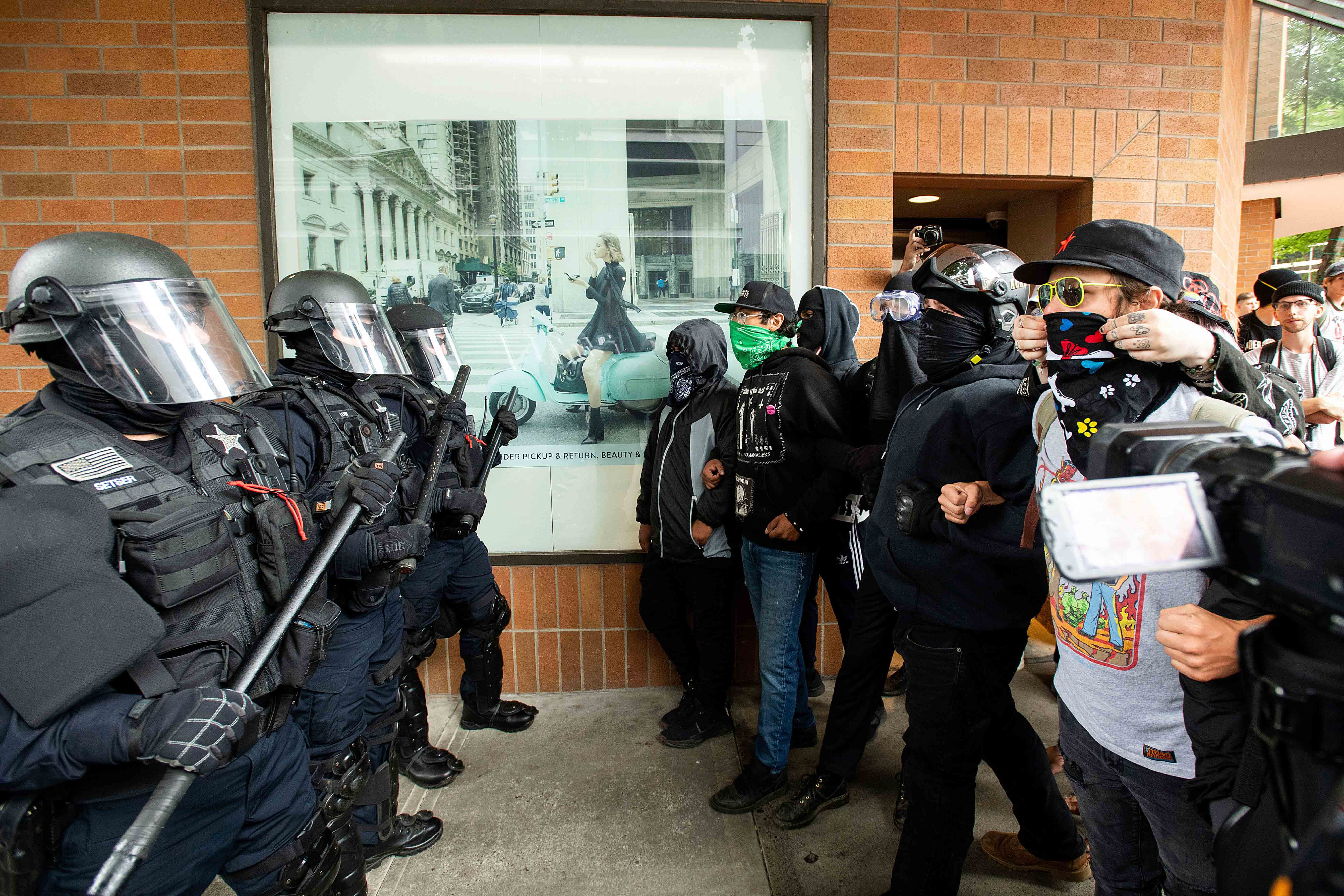 As of early afternoon, most of the right-wing groups had left the area. But hundreds of people remained downtown and on nearby streets, and there were tense skirmishes, mostly with antifa protesters who were trying to provoke right-wing rallyers, throughout the day.